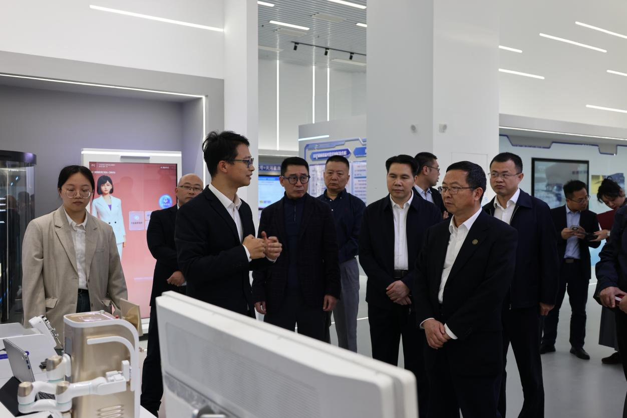 随后,高松调研了国家超级计算中心广州中心广西分中心,听取工作汇报。广西分中心由国家超级计算广州中心、南宁市数据局、中大数智科技有限公司三方共建,于2025年2月正式落地。高松肯定了广西分中心运用人工智能在生物医学领域取得的成果,他表示,中山大学将牢牢把握广西防城港国际医学开放试验区建设机遇,依托广西分中心建设,推动生物医学领域的产学研合作,为实现更多创新成果落地贡献中大智慧。
