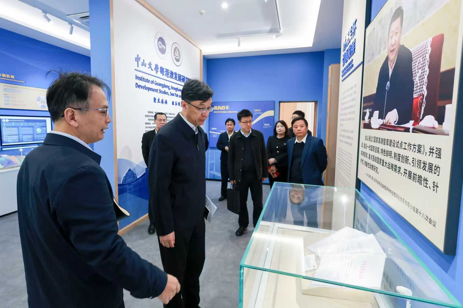 中大新闻网讯(记者刘俊鹏1月14日,校党委书记刘承功到粤港澳发展研究院调研,了解智库建设情况,与研究院领导干部、师生代表座谈交流。座谈会由副校长谢湜主持。刘承功先后参观了研究院的建设成就展、出席了调研座谈会,了解多年来研究院在学术研究、决策咨询、社会服务、人才培养等方面的发展成就,并听取与会人员对进一步做好学校智库工作的意见建议。1月14日,中山大学党委书记刘承功调研粤港澳发展研究院。图为刘承功参观...