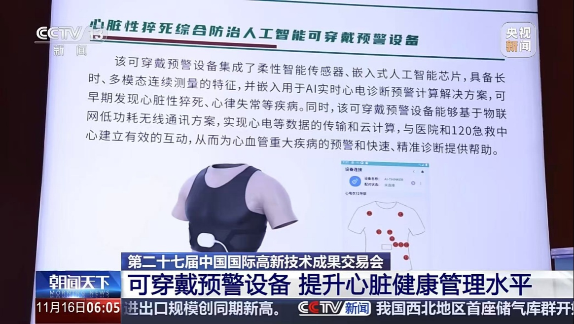 《朝闻天下》报道“心脏性猝死综合防治人工智能可穿戴预警设备”成果