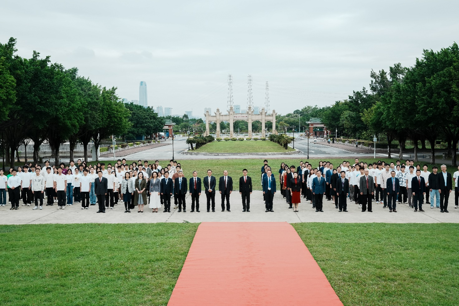 校党委常务副书记国亚萍、党委副书记张琪,副校长谢湜、副校长郑跃、党委副书记刁振强分别在南校园、北校园、东校园、珠海校区和深圳校区主礼献花仪式。校长办公室主任黄毅、医学部综合管理处处长龙波、东校园管理委员会主任李明章、珠海校区管理委员会主任刘梅、深圳校区管理委员会常务副主任丁小球分别主持了五个校区(园)的仪式。学校全体在校校领导,各职能部门、院系及附属单位负责人和师生代表,深圳校友会、深圳附属学校代表参加仪式。