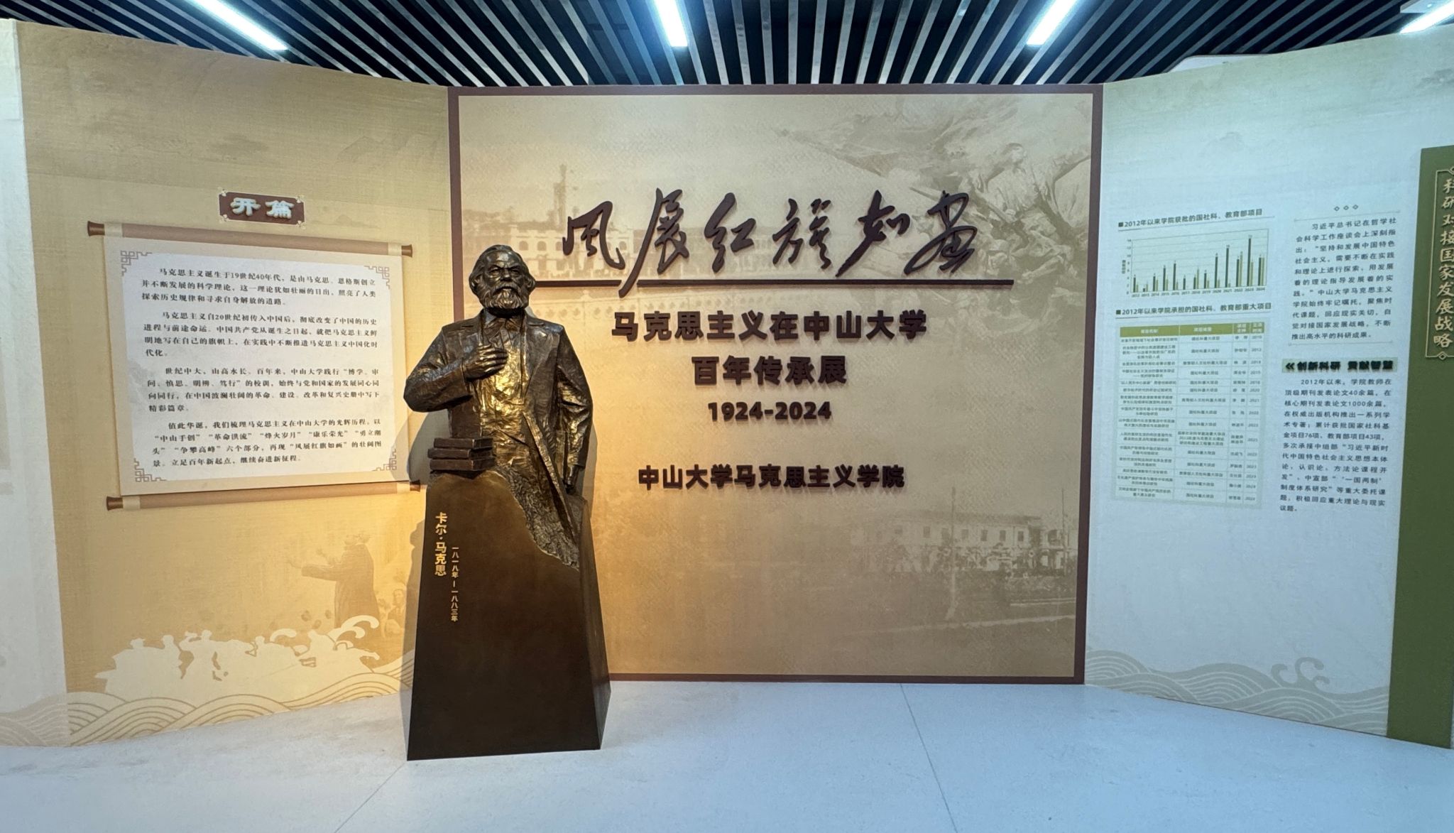 中山大学党委宣传部常务副部长黄艳表示,在习近平总书记亲致中山大学百年贺信一周年、全党全国学习贯彻党的二十届四中全会精神、中山大学即将迎来新百年征程第一个校庆之际,“风展红旗如画:马克思主义在中山大学百年传承”专题展开展,正当其时,很有意义。