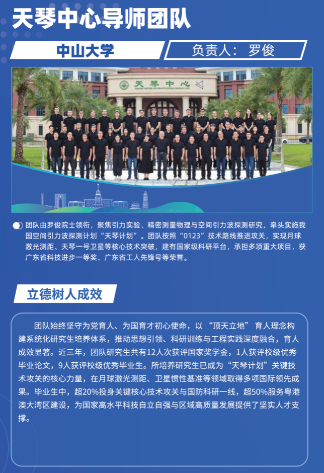 中大新闻网讯(通讯员庄艺敏)4月19日,中国研究生导师发展共同体首届优秀研究生导师与团队评选结果正式揭晓。中山大学“天琴中心导师团队”荣获“共同体首届优秀研究生导师团队”,中山医学院行业导师郭德银教授荣获“共同体首届优秀研究生行业导师”称号。
