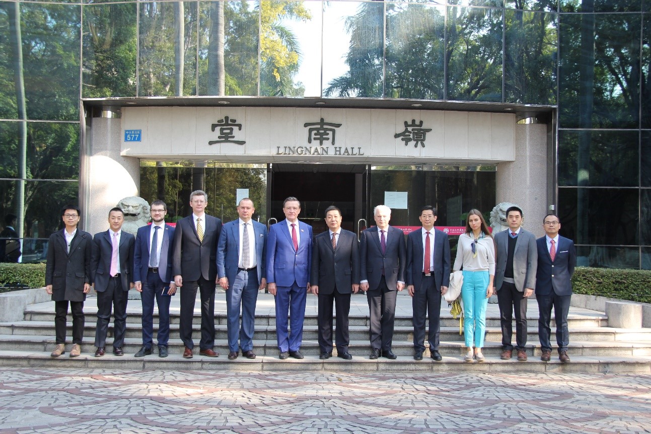 12月6日,俄罗斯圣彼得堡国立经济大学马克西姆采夫校长一行来访,我校党委副书记余敏斌在岭南堂会见了来宾。