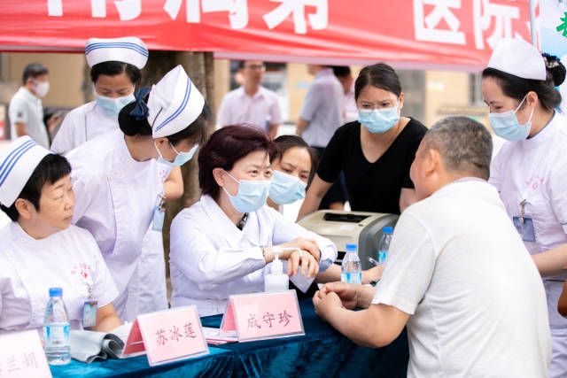 第48届南丁格尔奖章获得者、中山大学附属第一医院护理学科带头人成守珍主任护理师在高州市人民医院义诊。