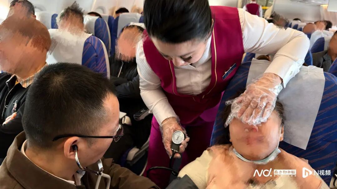 2025年12月24日,飞往广州的南航CZ6835航班刚从喀什起飞不久,一场紧张的空中急救就开始了。一位60岁左右的女性旅客突然鼻腔、口腔出血不止,机组紧急广播寻医。刚在新疆结束医疗援疆任务、连续两天完成数台手术的中山大学附属第一医院小儿外科谢钧韬医生、周李教授,以及中山大学中山眼科中心陈伟蓉教授,听到广播后,...